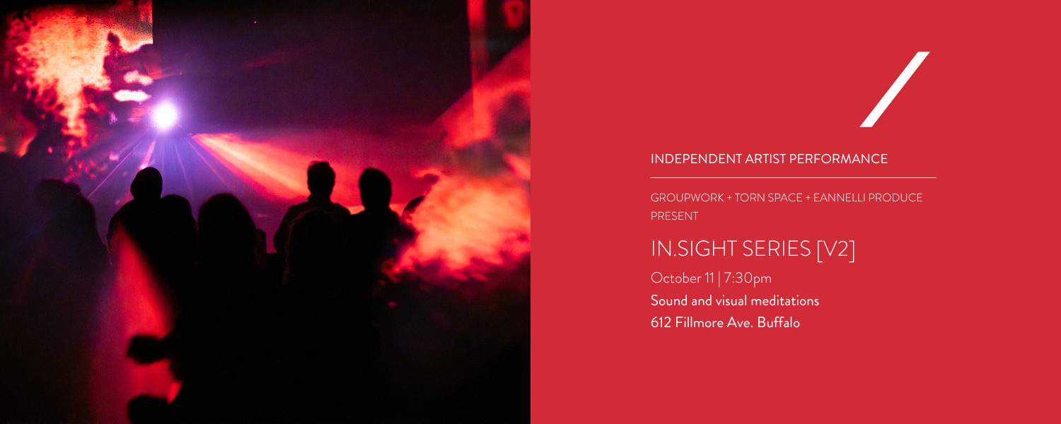 Torn Space launches its 25th season with exciting interdisciplinary performances in the 2025 INTERSECTION: Performance Series. Returning with four signature tiers of programming: the Individual Artist Series, Site-Specific Works, Agents of Change, and the Mainstage Series, Torn Space provides Buffalo audiences and artists with a platform for avant-garde and interdisciplinary performance experiences, cultivating unique gathering spaces for creatives whose work is often siloed in specific communities, and offering original groundbreaking performances in its signature design-forward style.